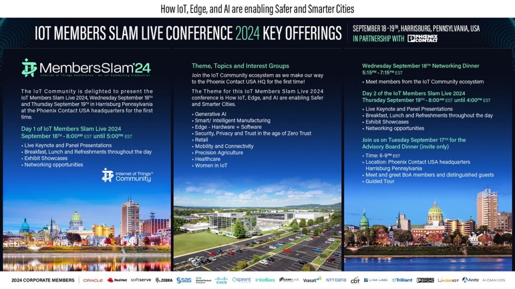 The IoT Community Announces its Exclusive Agenda for the inaugural IoT Community Members Slam Live 2024 Conference in Harrisburg, Pennsylvania, USA and Online hosted at the Phoenix Contact US Headquarters