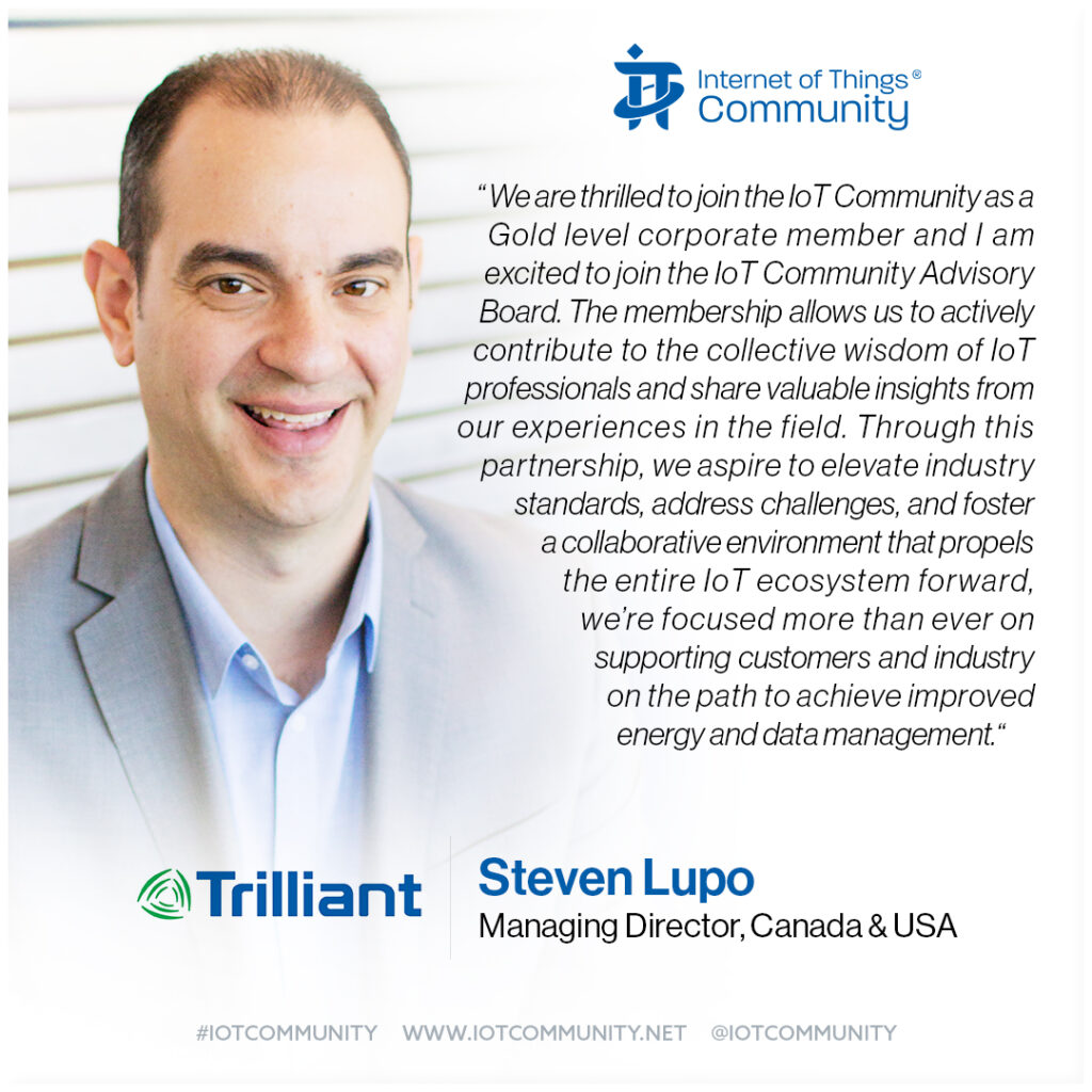 Steven Lupo of Trilliant “We are thrilled to join the IoT Community as a Gold level corporate member and I am excited to join the IoT Community Advisory Board. The membership allows us to actively contribute to the collective wisdom of IoT professionals and share valuable insights from our experiences in the field. Through this partnership, we aspire to elevate industry standards, address challenges, and foster a collaborative environment that propels the entire IoT ecosystem forward. We’re focused more than ever on supporting customers and the industry on the path to achieve improved energy and data management.”