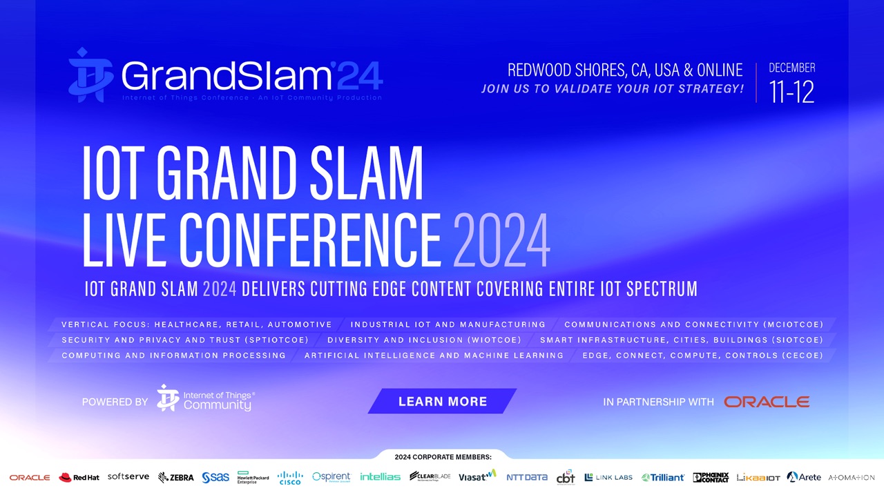 IoT Grand Slam Live 2024, features an exclusive end-user focused program, luminary thought leaders and practitioners from the IoT ecosystem as well as corporate members of the IoT Community.