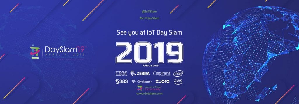 The IoT Day Slam 2019 is the Internet of Things Community’s eighth international conference, covering a horizontal industry perspective, across the entire spectrum of IoT. The IoT Day Slam takes place April 9, 2019 virtually in the cloud. For more information, visit www.iotslam.com. IoT Slam delivers the best in class IoT Strategy, Leadership, Advisory and Methodology – (SLAM)™.