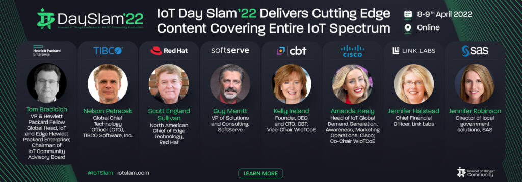The event marks the IoT Community’s eighteenth IoT Slam branded conference – one of four events planned for 2022, which once again will provide the global IoT ecosystem with a unique opportunity to learn from expert innovative practitioners, about the “best of the best” use-cases, learnings and best practices for enterprises designing, developing, and shaping the future of enterprise and industrial IoT landscape.